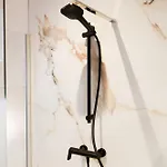 Bathroom amenities include a walk-in shower and a separate toilet, along with comforts such as hair dryers and bath sheets.